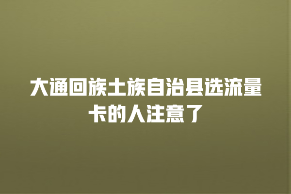 在大通回族土族自治县,流量卡的选择直接关系到上网体验和话费开销。本地用户常遇到信号覆盖差、套餐不透明的问题,选卡前先搞清这几点:
