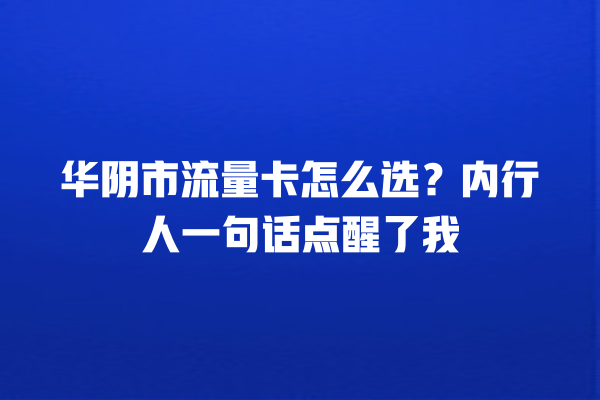 最近发现身边不少朋友选流量卡时踩雷,要么套餐虚标,要么信号拉胯。华阴市这地方地形特殊,北靠华山南接渭河,选卡还真不能光看价格。