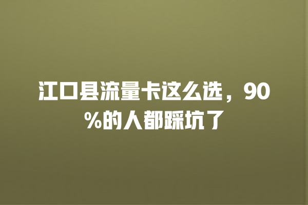 很多人选流量卡只看“月租低”或“流量多”,结果用起来才发现限速、虚标、合约期巨坑。江口县本地人实测,这几个细节不注意分分钟被套路。