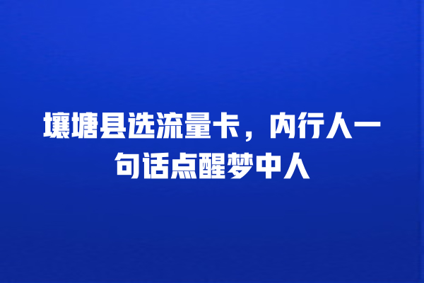 壤塘县流量卡怎么选?避开这些坑就稳了