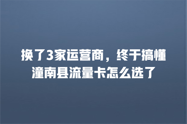刚搬到潼南县那会儿,为了选张靠谱的流量卡,我连续换了3家运营商。移动、电信、联通全都试了一遍,结果发现根本不是“贵就好用”那么简单。
