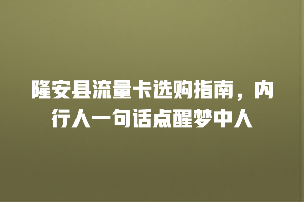 隆安县流量卡怎么选?避开这些坑就稳了