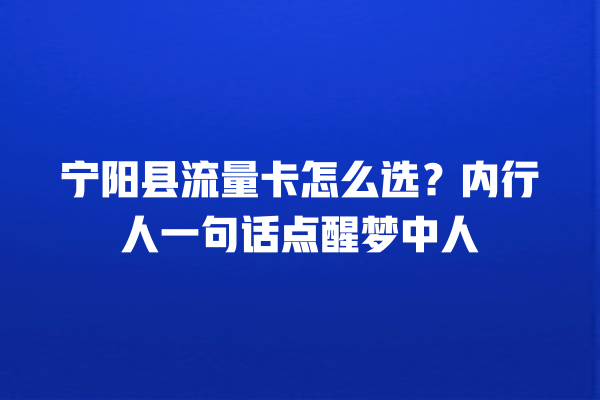 宁阳县流量卡怎么选?内行人一句话点醒梦中人