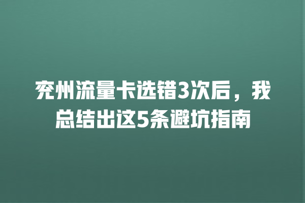 兖州流量卡选错3次后,我 出这5条避坑指南