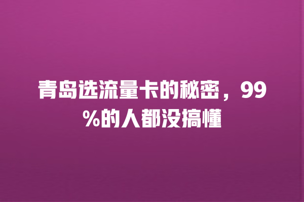 在青岛选流量卡,千万别只看宣传的“超大流量”,很多套餐用起来才发现限速、定向流量坑一堆。