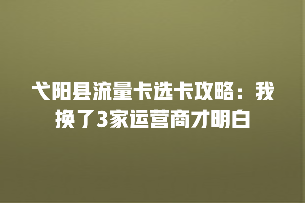 弋阳县流量卡怎么选?踩坑3次的血泪经验