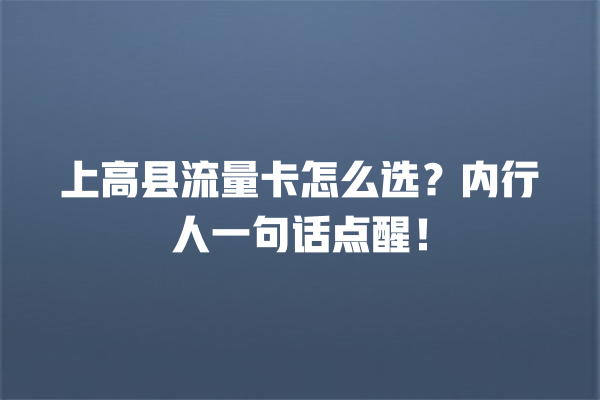最近不少上高县的朋友在问,流量卡五花八门,到底该怎么挑?其实关键就三点:看需求、比套餐、查覆盖。