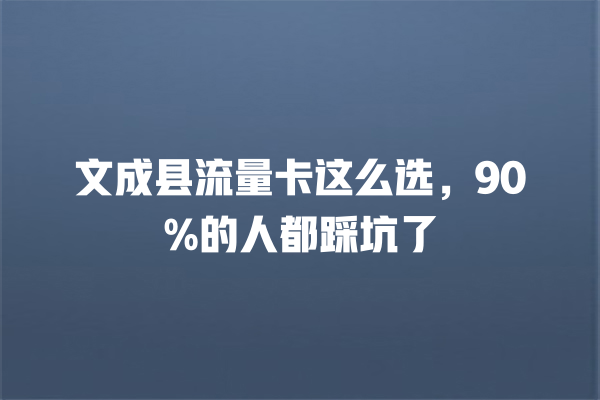 文成县流量卡避坑指南