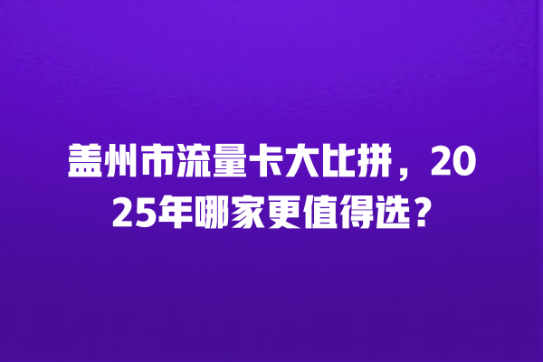 2025年盖州市主流运营商(移动、联通、电信)的流量套餐竞争激烈,本地用户常面临选择困难。移动信号覆盖广但资费偏高,联通性价比突出但郊区信号不稳,电信则主打融合套餐(绑定宽带更划算)。