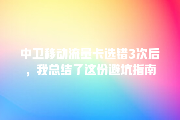 中卫移动流量卡选错3次后,我 了这份避坑指南