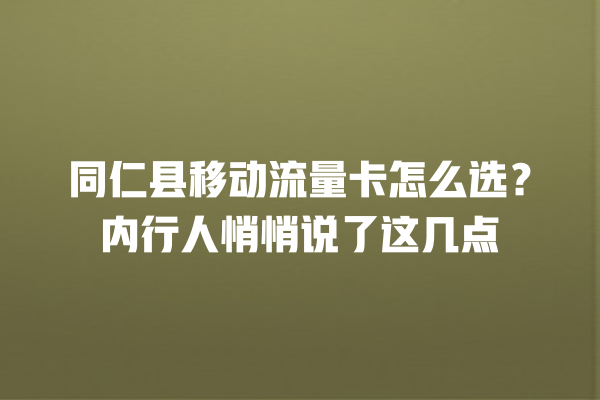 同仁县选移动流量卡,别光看宣传页上的“超大流量”,有些套餐用起来才发现限速严重,刷个视频都卡成PPT。当地人实测,这几个坑千万别踩: