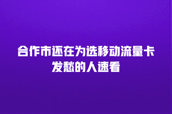 合作市三大运营商(移动、联通、电信)的流量卡套餐五花八门,光看宣传页的“100G大流量”可能暗藏玄机: