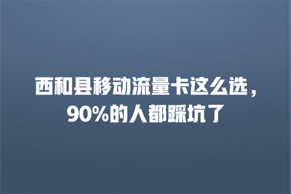 很多人觉得流量卡随便买就行,结果用起来才发现网速慢、流量虚标、套餐到期直接涨价。西和县选移动流量卡,这几个细节不注意分分钟被坑。