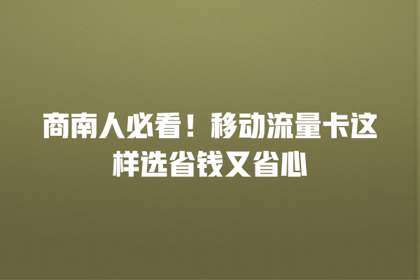 商南县移动流量卡种类多,但选对套餐才能避免浪费。先看自己每月用多少流量: