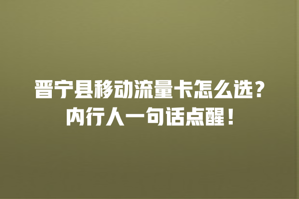 晋宁县移动流量卡怎么选?内行人一句话点醒!