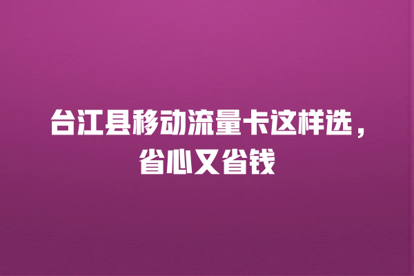 台江县移动流量卡选择要点