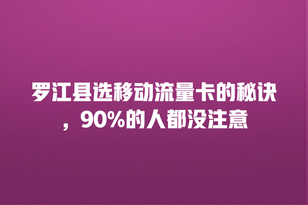 罗江县移动流量卡怎么选?避开这些坑就对了