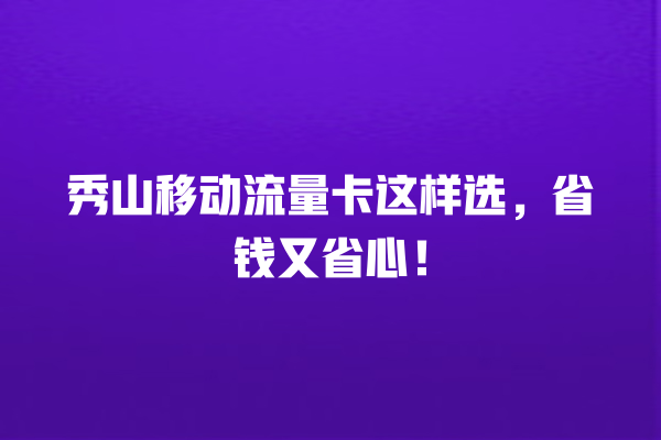 秀山土家族苗族自治县三大运营商(移动、联通、电信)的流量卡五花八门,但核心就三点:
