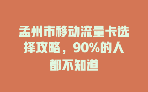 可以问问身边用移动卡的朋友,在各个区域的使用感受,或者在网上搜索孟州市移动网络覆盖相关的评价,这样选出来的卡用起来才不会老出现没信号、网速慢的情况。