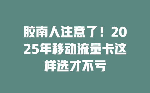 胶南人注意了!2025年移动流量卡这样选才不亏