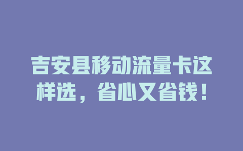 吉安县移动流量卡种类多,但选错套餐可能白花钱。先看这几个关键点: