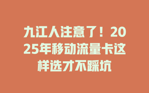 九江移动用户最头疼的就是流量不够用,刷视频半小时套餐就快见底。运营商套路多,什么“不限量套餐”实际限速,“大流量卡”可能暗藏合约期,九江本地人办卡前一定要擦亮眼。