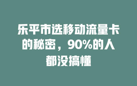 乐平市移动流量卡五花八门,但90%的人根本不会挑。运营商把优惠藏得深,稍不留神就掉进“低月租高限速”的坑。