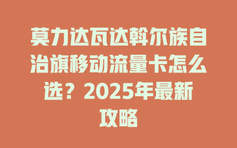 莫力达瓦达斡尔族自治旗地处内蒙古东北部,网络覆盖以4G为主,城区5G信号逐步完善。当地移动用户常遇到山区信号波动、流量资费不透明等问题,尤其农牧区对高性价比流量卡需求强烈。