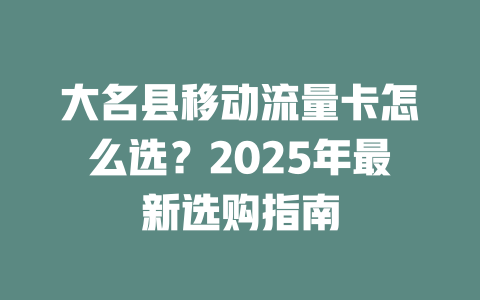 大名县移动流量卡主要分三种:日租卡、月租卡和长期套餐。日租卡适合短期使用,比如1元500MB/天;月租卡常见的有30元10GB、50元30GB等;长期套餐一般是半年或一年期,流量均价更低,比如200元100GB/年。