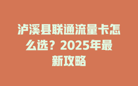 泸溪县联通流量卡怎么选?2025年最新攻略