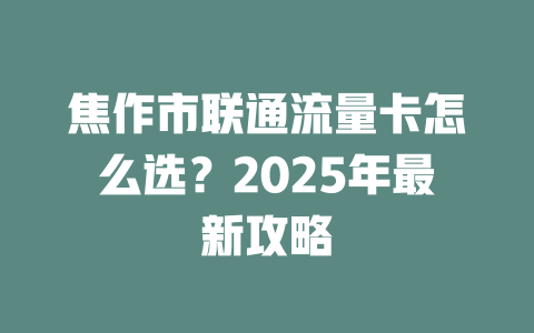 焦作联通流量卡套餐对比