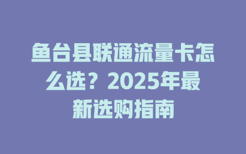 鱼台县联通流量卡怎么选?2025年最新选购指南