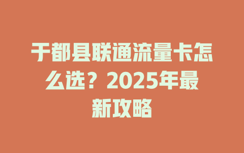 联通在于都县主推的流量卡分三类:日租卡、月租卡和长期套餐。日租卡适合短期需求,比如1元/天500MB;月租卡常见的有29元30GB、59元100GB;长期套餐一般是2年合约,流量单价更低但需预存话费。
