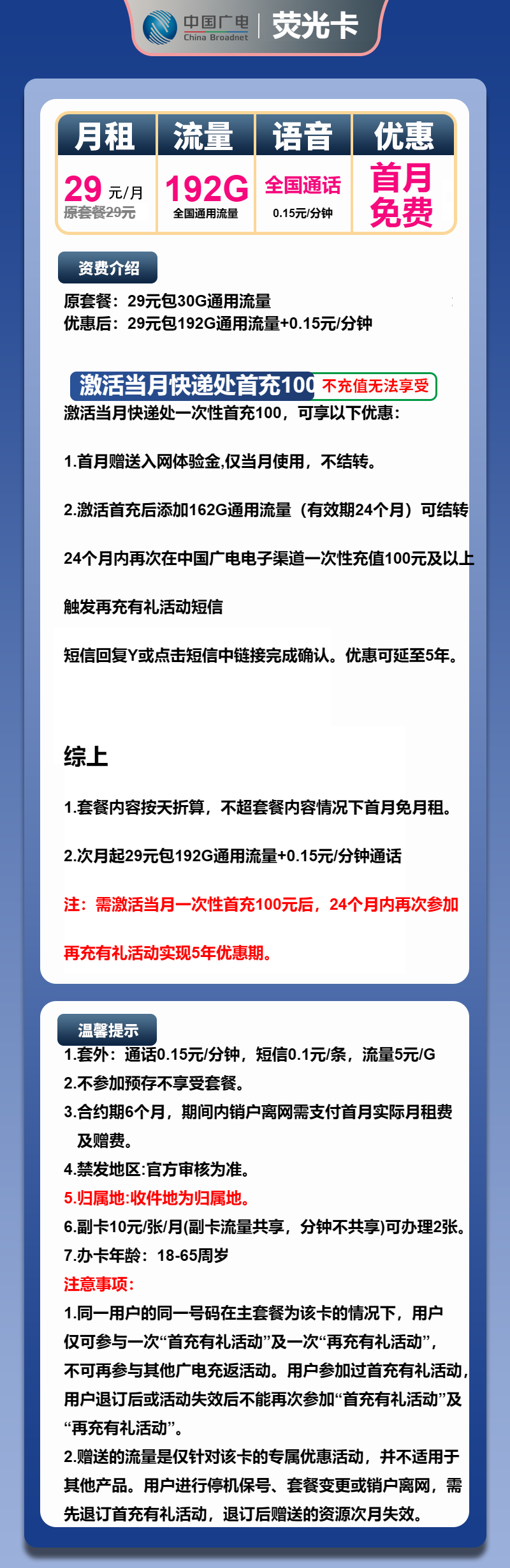 - 再充福利(再充 100 元,流量延长 36 个月):https://h5.gantanhao.com/url?value=7NiMT1749974019121
