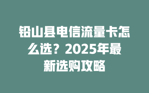 铅山县电信流量卡怎么选?2025年最新选购指南