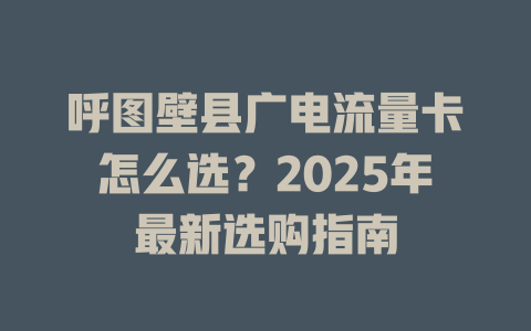 呼图壁县广电流量卡怎么选?2025年最新攻略